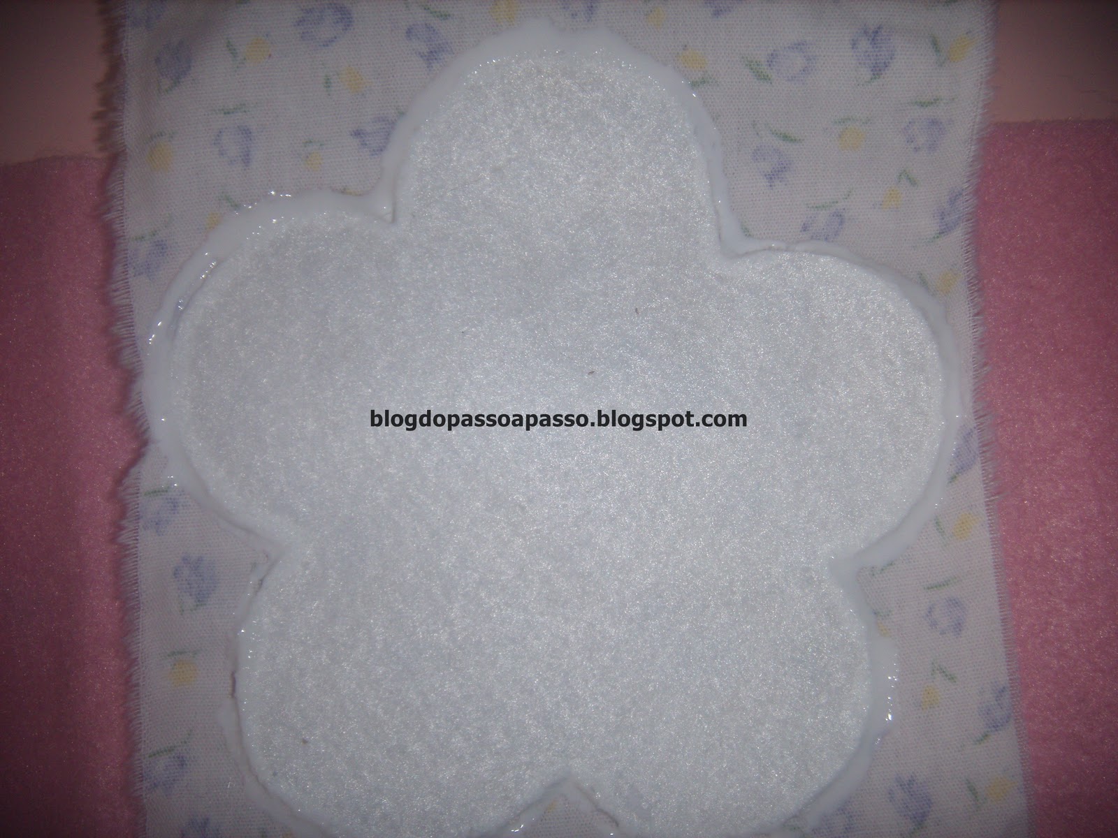 passe cola ao redor da flor, apenas no tecido!!