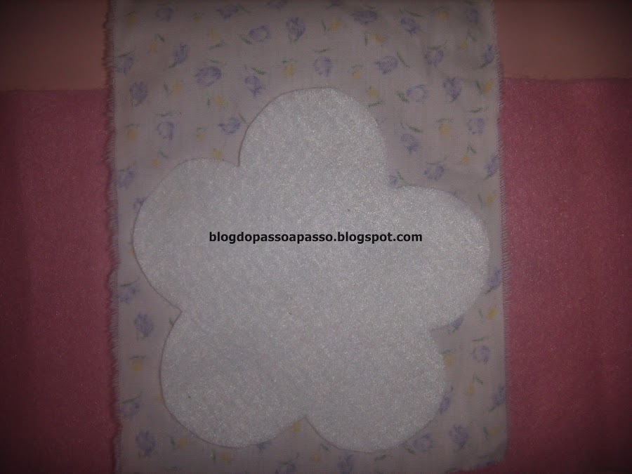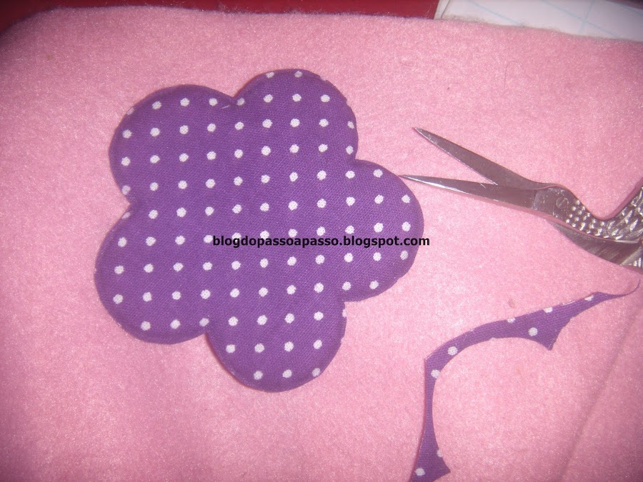 Sobreponha a flor cortada no tecido pelo avesso.