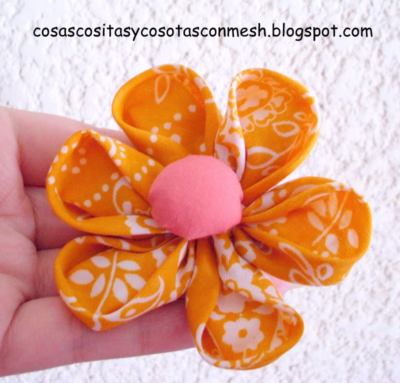 2.-Doblar el retazo de tela por la mitad 3.-Ahora doblare ambos lados hacia el centro 4.-Ya doblada mi tela ,formare el primer pétalo de mi flor 5.-Con una aguja y hilo coseré en la parte inferior y así seguiré asiendo los demás pétalos de la flor que serán 6.