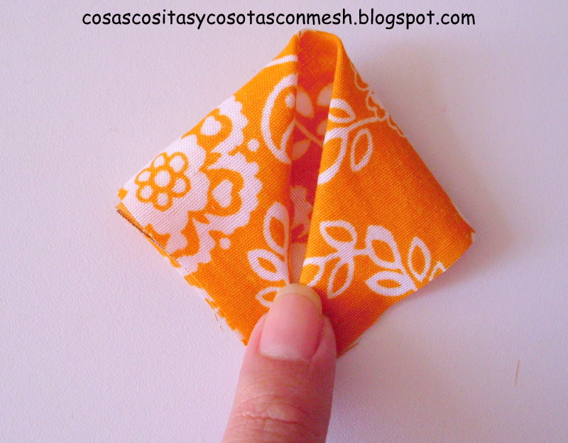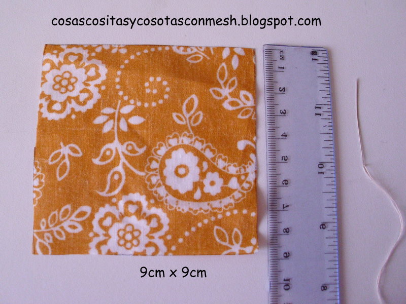 1.-Cortar un retazo de tela de 9cm x 9cm.(también las pueds hacer mas grandes )