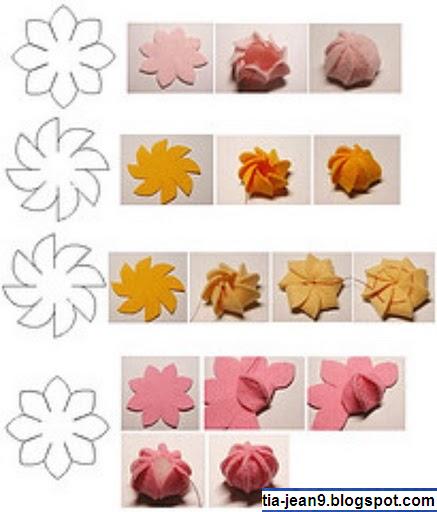 Saludos a todas is compañeras. En mi blog hay un paso a paso de como hacer esa linda flor gordita. Aquí os dejo fotos y las instrucciones. Para la primeira parte de la flor: a) corte 5 círculos de 6cm ...