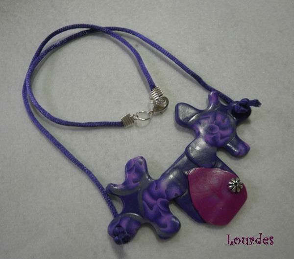Collar de arcilla polimérica con diferentes texturas y acabados y alambre grueso. Para Inés con todo mi cariño