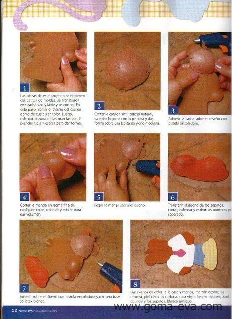 Cortar la mangas en goma eva de cualquier color, calentar y dar volumen.