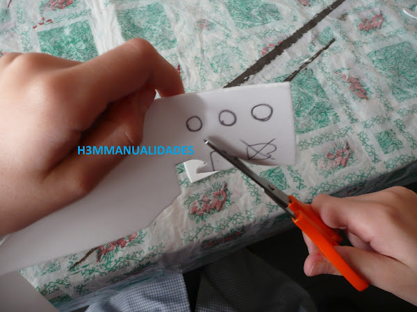 Mientras se va secando lo anterior, empezamos a cortar unos botones, unos guantes y una barba en la goma eva.
