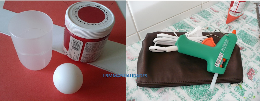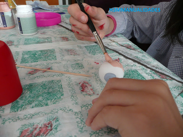 Y a pintar la bola. Para sujetar pusimos algo de plastilina cogida con un palillo, pero aún y todo se nos movía... De todas formas no pasa nada si quedan huecos sin pintar en la parte de arriba o de abajo, porque no se verán.