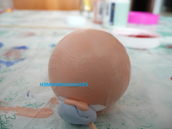 Para la cabecita (la bola del roll-on) mezclamos un tono salmón con un gris clarito para aclararlo y que sea más un color carne)