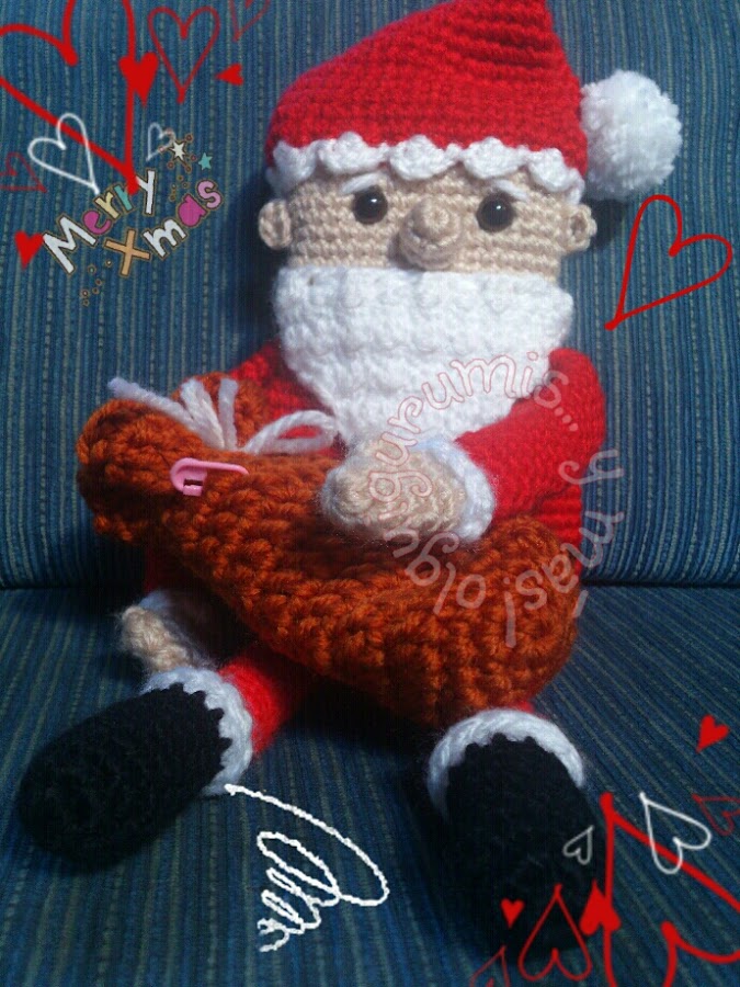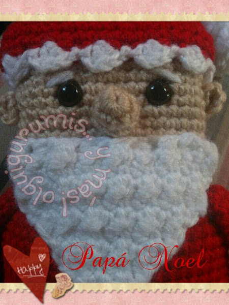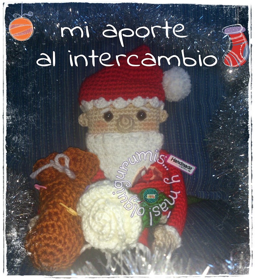 Este simpático Papá Noel, mi versión del cuadrado, fue parte de mi aporte al II Intercambio de gumis entre mis amigas tejedoras, junto con la rosa blanca y un juego de crochet que llevaba el saco.