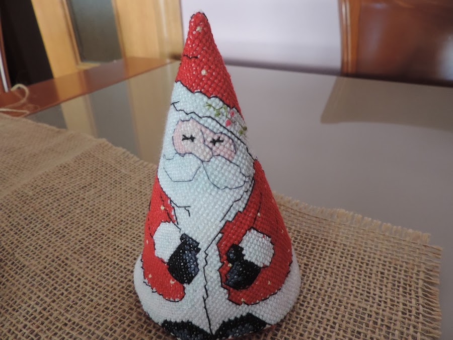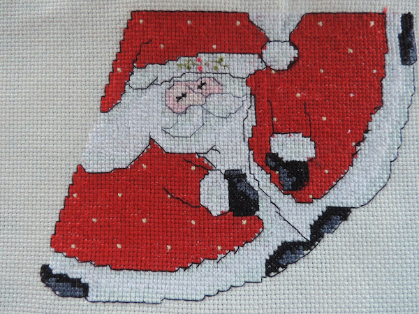 Cuando nos dijeron que este mes el reto iba de "Preparando la Navidad", me gustó muchísimo el tema, y enseguida me puse manos a la obra para buscar algo navideño, y me acordé de unas figuras de belén que ví hace tiempo en un libro, y que me gustaron mucho, como no las encontré y encontré un Papa Noel en punto de cruz para colgar en el árbol de Navidad, también de figurita en punto de cruz, no me lo pensé dos veces y me puse a bordarlo.