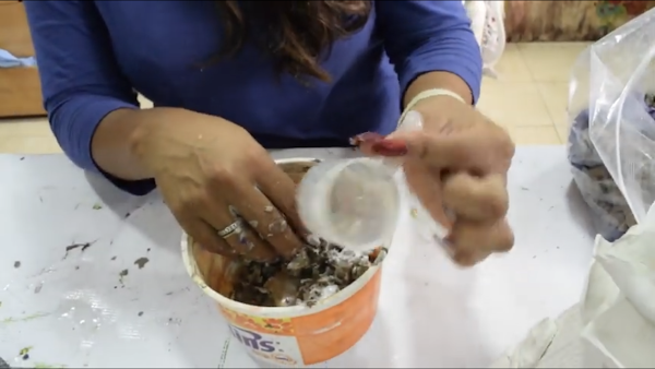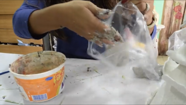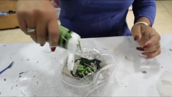 Cuando ya hemos mezclado bien la pondremos en una bolsa plástica como vemos en la imagen.
