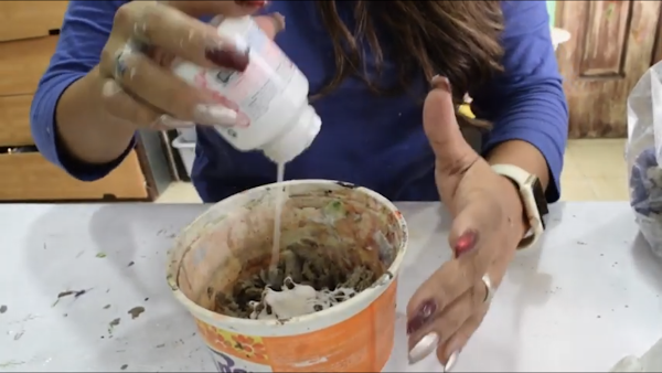 En esta parte me gustaría mencionarles que existen varias formas de hacer la pasta, como agregarle harina, jabón de lavaplatos, vinagre, etc; en nuestro caso solamente usaremos Goma, o cola de Carpintero, la que tengas. La cantidad sera según la cantidad de cartón que uses, y vas sintiendo la consistencia que quieras.