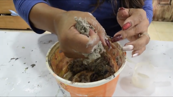 Mezclamos muy bien los materiales, para que se integren y nos den la pasta con la consistencia adecuada.