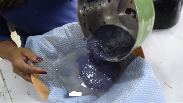 Ya licuado el cartón lo iremos secando, para ello lo podemos hacer con la mano o en nuestro caso usamos una toalla de cocina desechable.