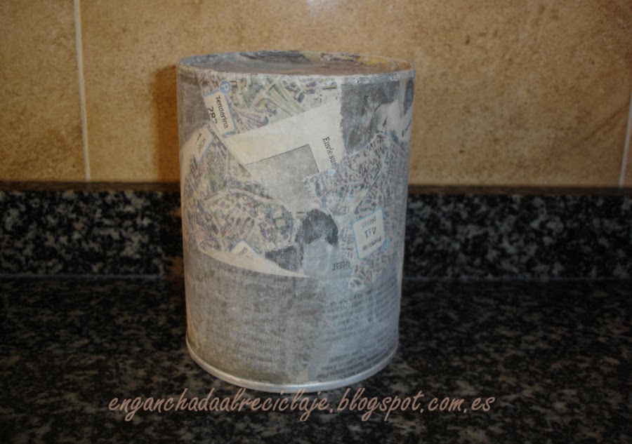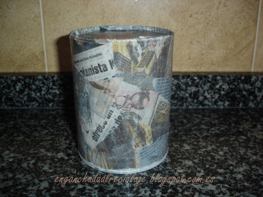 El cartón no era muy duro, así que le pegué dos capas de periódicos con cola blanca aguada y cuando estuvo bien seco lo lijé muy bien para unificar todos los trozos de papel.