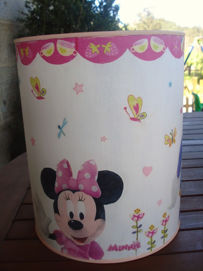A la peque hace poco que le preparamos la habitación y alguna cosa le había hecho, un baúl para sus juguetes y unas letras y ahora tenía pendiente la papelera.