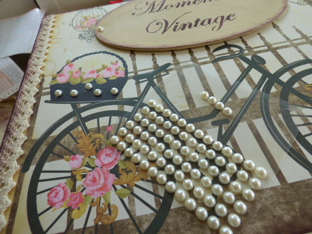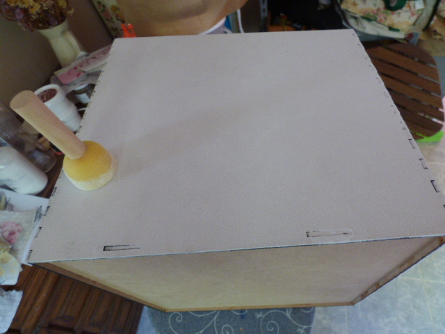 Encima la he pintado con la Chalky Timeless que es el tono que mejor le iba a los papeles de scrap elegidos para decorarla.