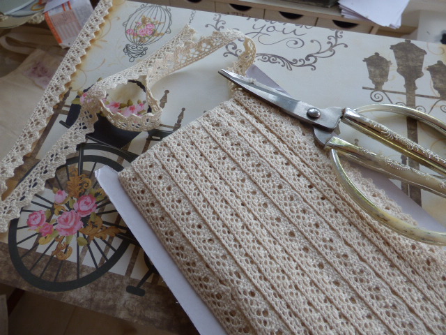 Y todo sombreado con la esponjita y la misma acrilica marrón de los estarcidos de la placa. Incluida la puntilla.....