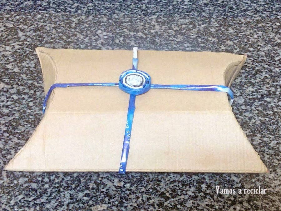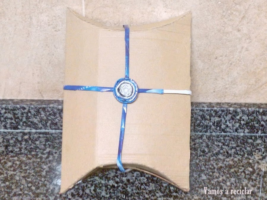 Hace unos días compré una caja de bombones para regalar a una amiga pero no había llevado nada al pueblo para envolverla y no tenía mucho tiempo así que decidí hacer un paquete reciclado.