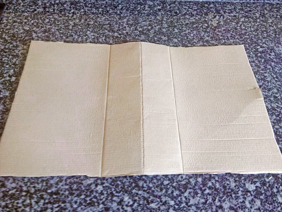 Primero corté las pestañas de la caja de cartón. Marqué una linea a la mitad con la punta de la tijera y doblé una pestaña lateral para unir los dos extremos.