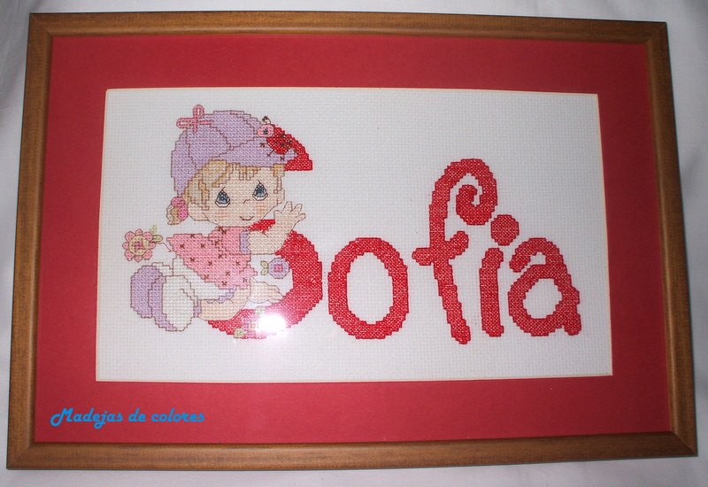 Yo encantada de poder colaborar, hasta aquí todo normal. Pero lo que llamó la atención fue cuando me dijo que lo dejaba a mi elección, pero para el color de las letras, la madre las había pedido en rojo y el marco en color madera no muy clara.