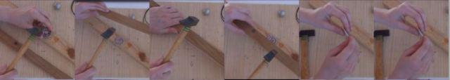 Martillo, tijeras, tablitas de madera.