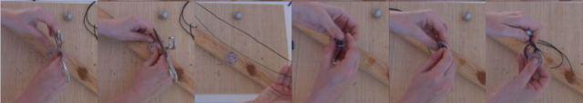 Doblamos el cordón por la mitad, lo insertamos por el orificio de las chapas y hacemos un nudo.