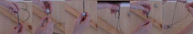 Hacemos un nudo simple entre la cápsula y la perla.