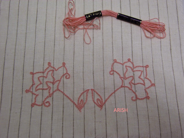 un bordadito sencillo de cadeneta en color rosa asalmonado con hilo moulinée de Coats