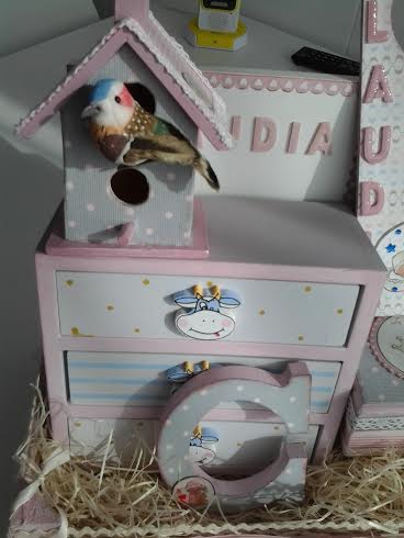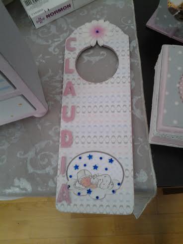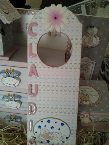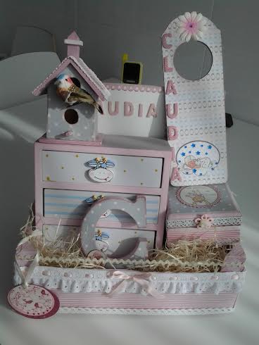 Estos son los trabajitos que hice para regalar a una recien nacida guapísima que como veis se llama Claudia y es la primera nieta de mi prima Carmen.