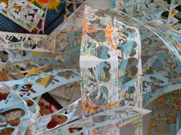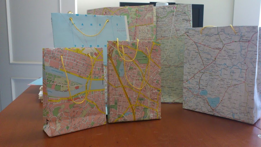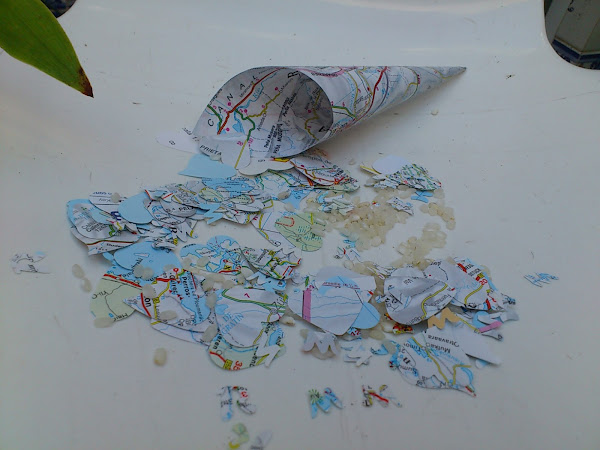 Los cartuchitos donde iba colocado el arroz también estaban hechos con los mapas.