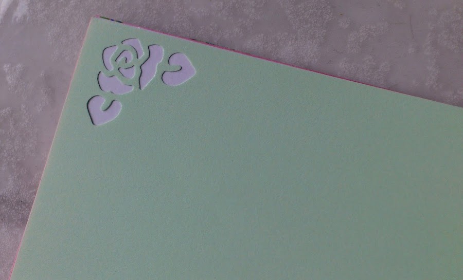 Aquí un detallito del interior, en la esquina le he puesto un troquel y alternando una página blanca con otra de color. En la blanca el troquel está en la esquina inferior derecha y en la amarilla en la esquina superior derecha. Así se ve el efecto en todas las páginas.