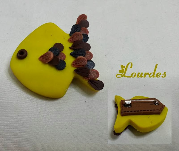 Broches de 4 centímetros de diámetro barnizados y con detalles en arcilla polimérica