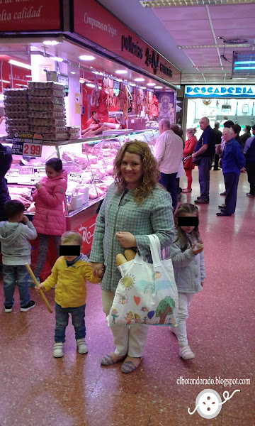 Al día siguiente cuando estaba en el colegio aproveché y cosí la bolsa fijándome en una que tenía. Y cuando volvió, se la enseñé, ¡la encantó! Y se metió en la habitación a envolverla jejeje.
