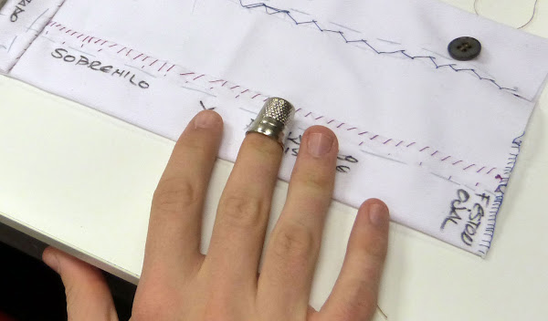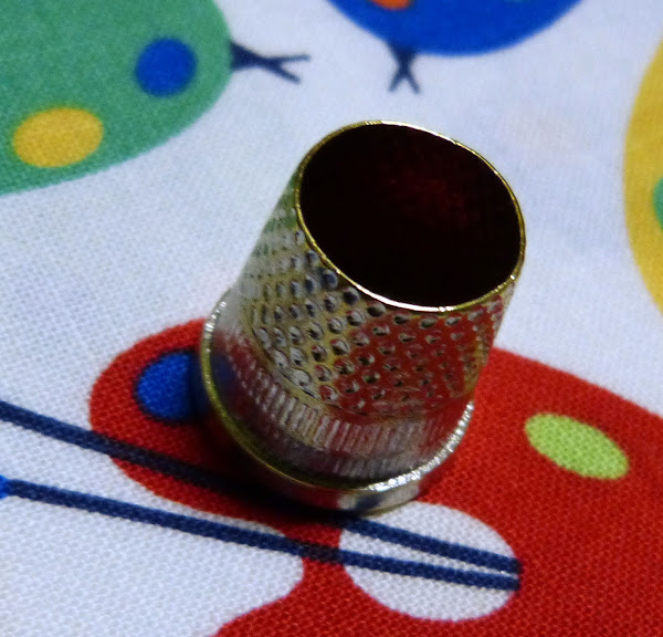 Es el dedal que yo utilizo casi siempre, su forma nos obliga a empujar por el lateral del dedal, por lo que se cose a mayor velocidad que con el de modista.