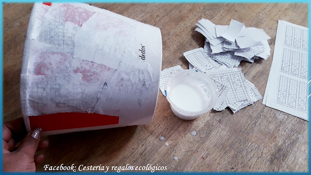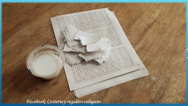Como regularmente ese cartón es muy delgado y frágil, vamos a fortalecer pegando 2 o 3 capas de papel, cualquier tipo de papel, puede ser de diarios, revistas, folletos hojas de oficina recicladas, etc.