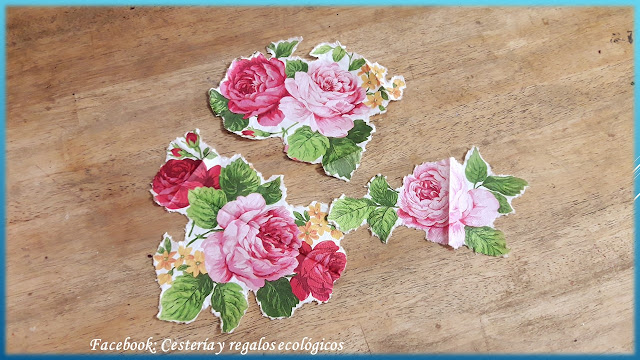Si usas papel de regalo o servilletas o algo impreso, vamos a recortar alrededor de las figuras, con nuestros dedos, como desgarrando, para que no se noten las orillas...