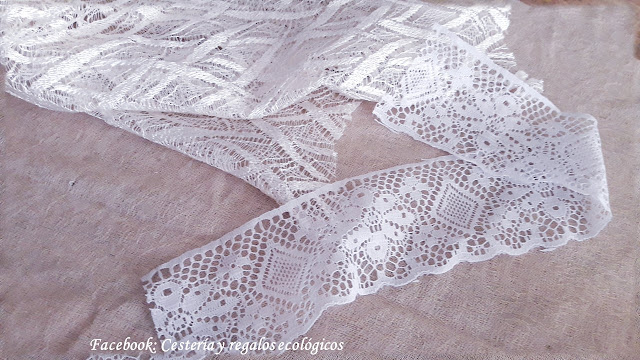 Para decorar: lo que tengamos en casa, puede ser una tira de encaje (revisa la ropa que ya no uses, quizás encuentres algo ahí, o una vieja cortina)...