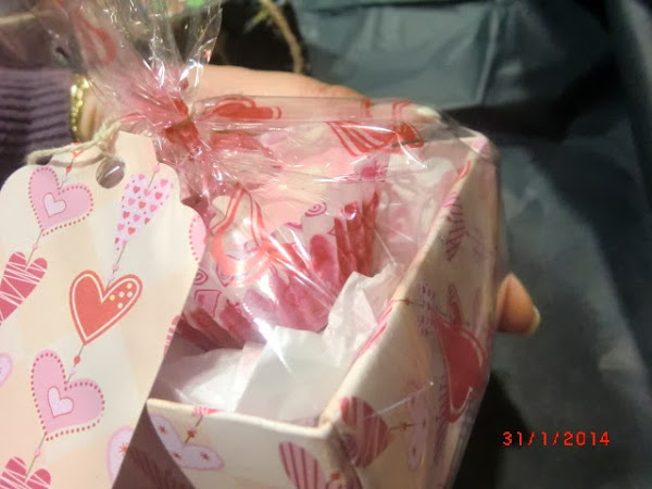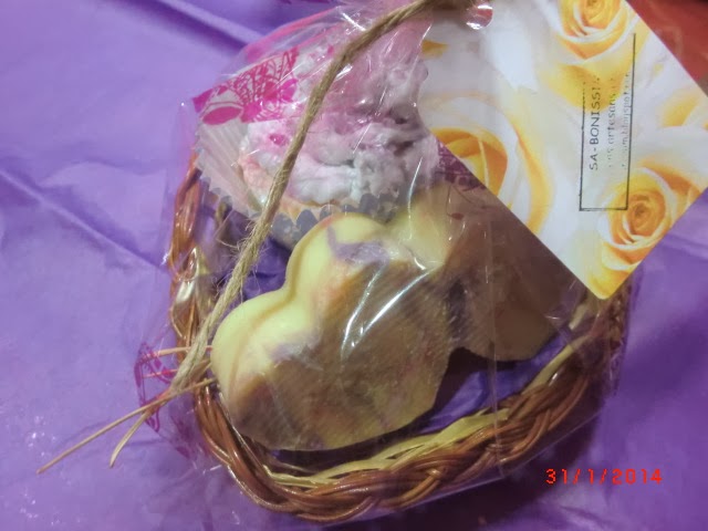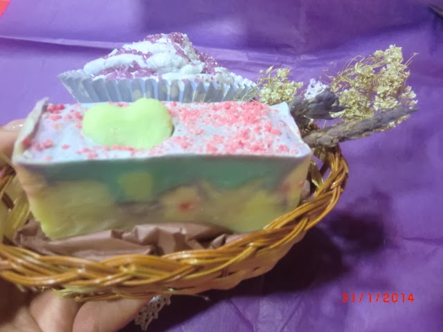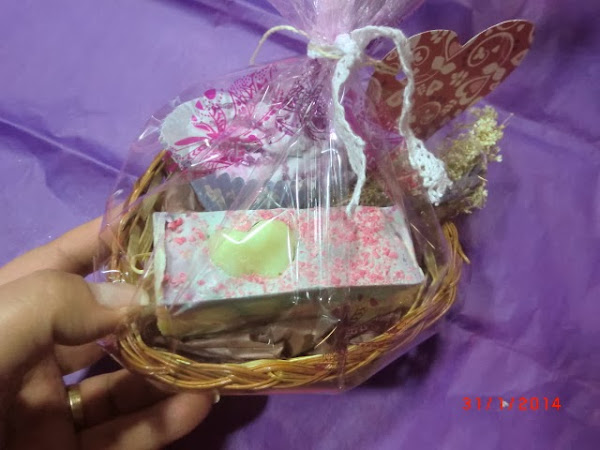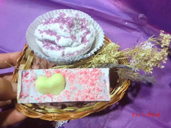 En tonos lilas... en una cestita con forma de corazón:
