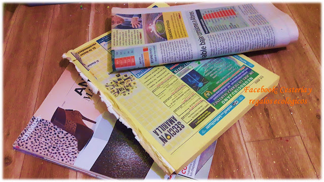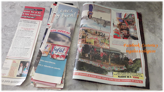 Lo primero que vamos a hacer es cortar las hojas de las revistas de manera vertical, en 3 partes o tiras de aproximadamente 7 cms., de ancho...