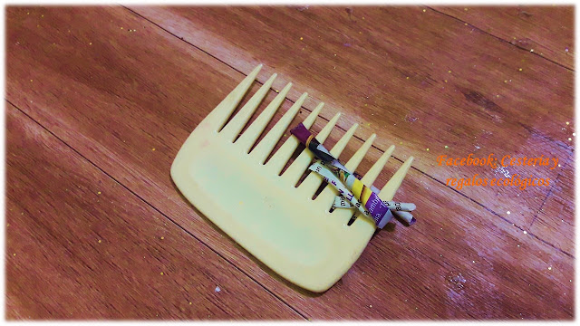 Necesitamos un peine de puntas separadas, no importa el tamaño. Sobre este formaremos las piezas del centro del colgante, si se fijan, es muy fácil, solo ir doblando la varilla de papel...
