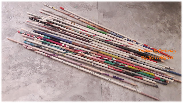 Con una aguja de tejer o un palillo de madera del tipo de brochetas, enrollamos las tiras para obtener estas varillas o tubitos...