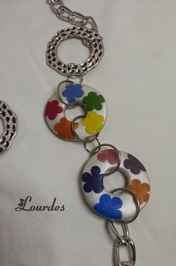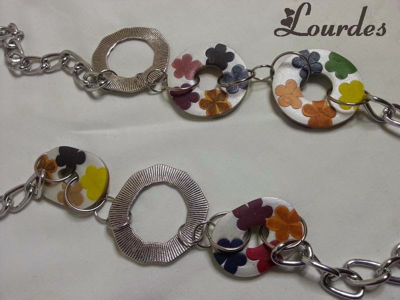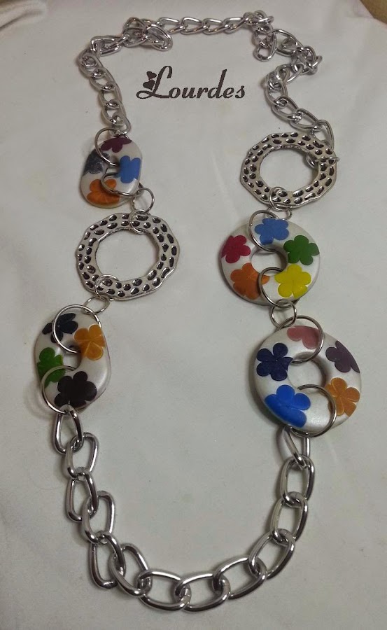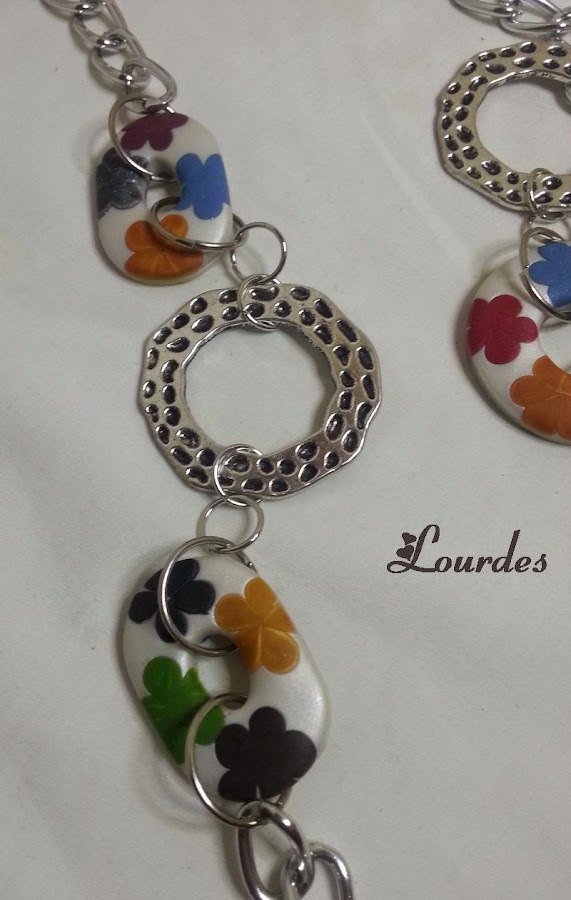 Arcilla polimérica con cadena y adornos metálicos plateados