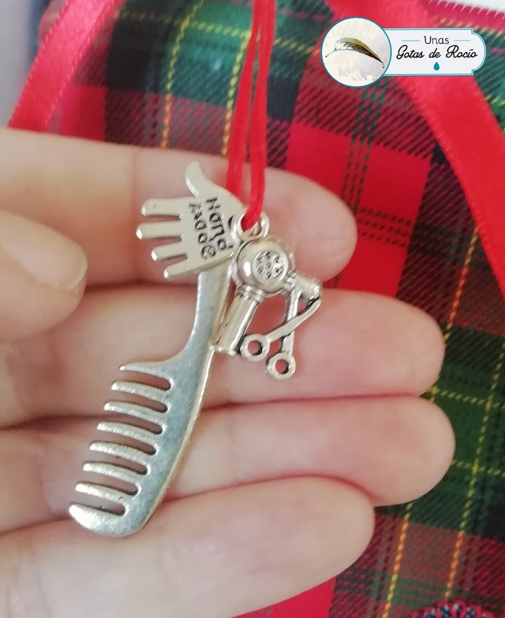 Y por último un neceser para Laura tal como me lo pidió su tía: con cuadros escoceses rojos con base de tela vaquera. En el tirador de la cremallera le puse unos charms de un peine y un secador del pelo, y quedó simpático.