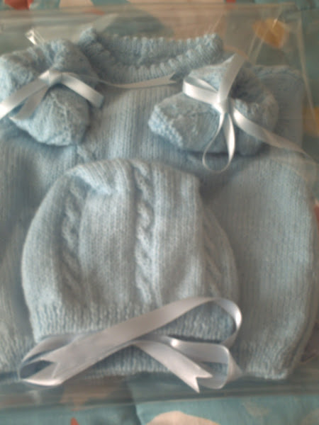 Jersey para bebé hecho a mano con patucos gorro y faldón,