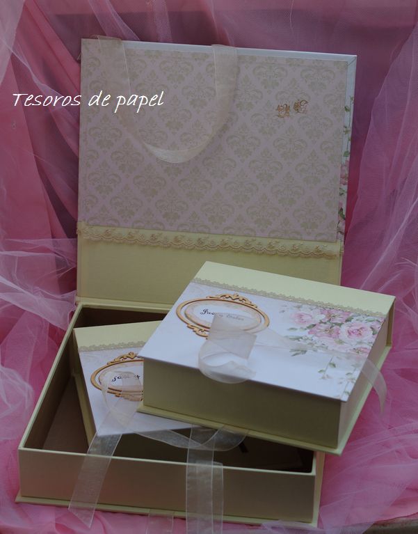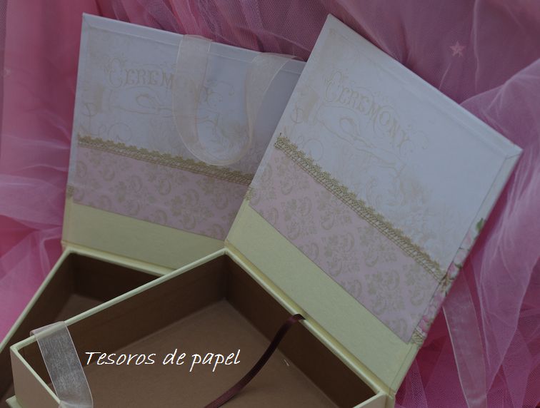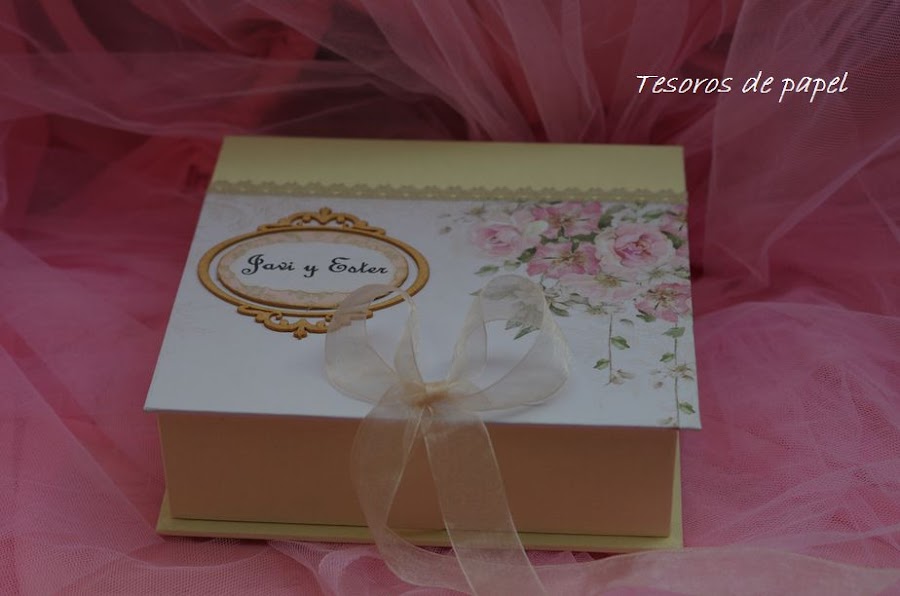 Una caja clásica, en formato libro, realizada en cartonaje para guardar dos pequeños jabones. La cajita es tan pequeña (14 x 9 cm), que cuando la estaba realizando tomaba varias veces las medidas, ya ...