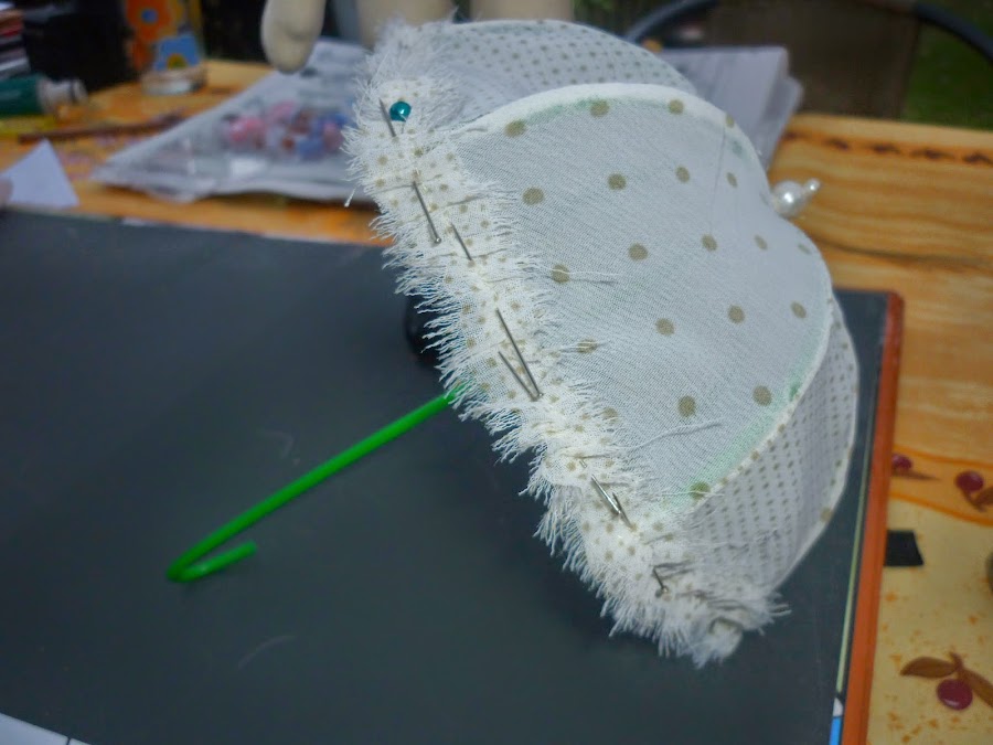 Aquí veis la estructura del paraguas , la hice de alambre y tubitos de plástico de floristería , creo que lo mejor es que ponga el enlace al tutorial por el que yo lo hice , así si alguna tiene interés podrá hacerlo también .