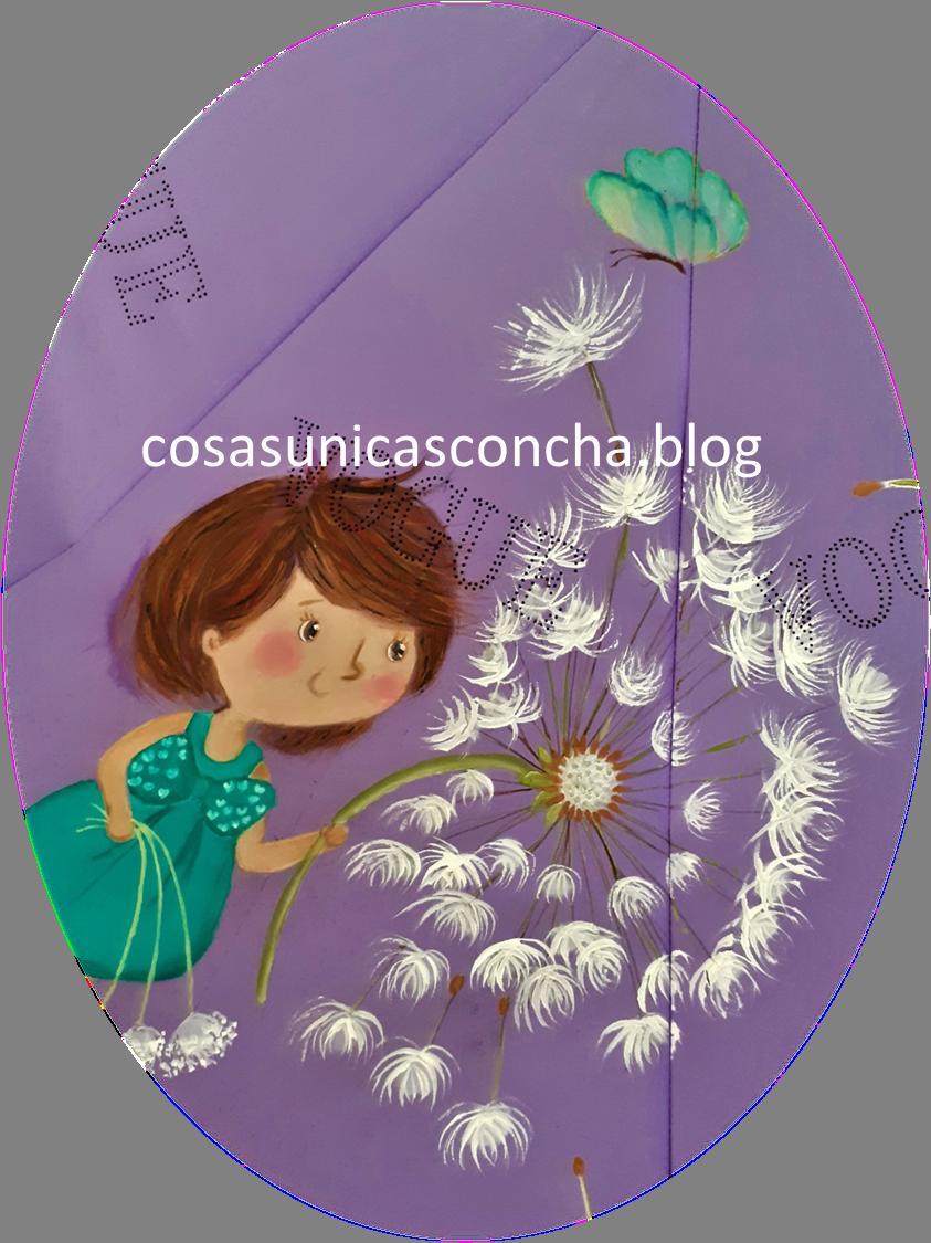 Así que pense, primero , que fuese un paraguas diferente y por supuesto exclusivo, porqué iba dedicado a ella, así que el dibujo también tenía que ser especial.