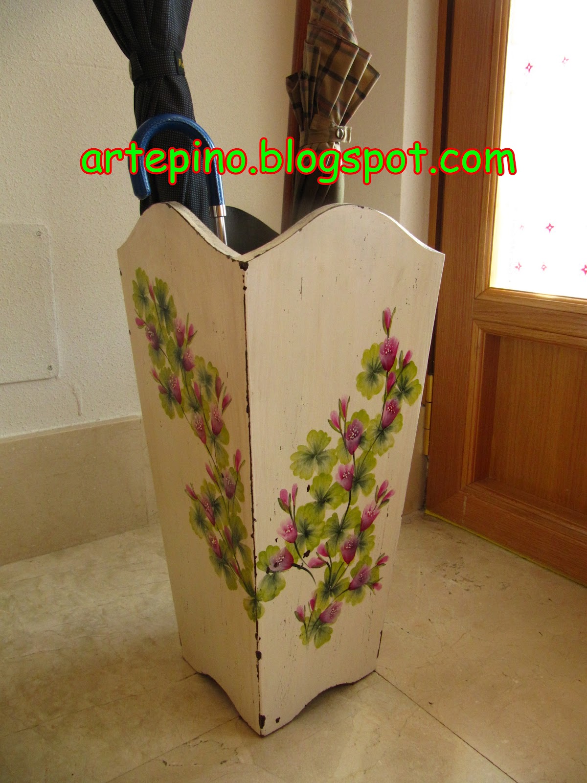 Uf!!! cuanto tiempo sin actualizar, no porque no tenga cosas que mostrar, si no porque he estado bastante perezosa para actualizar. Pero dicen que año nuevo, vida nueva... os dejo un bonito paragüero, que pinte con pintura acrílica y termine con barniz cerámico. A ver que os parece. P.D. tengo guardadas más cositas que os iré enseñando. Feliz año 2014.