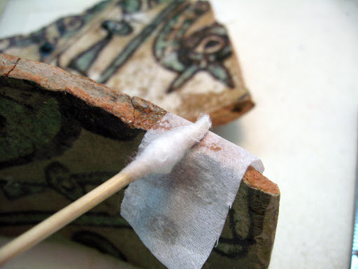 Limpieza de los bordes de fractura para la aplicación del Paraloid B72.