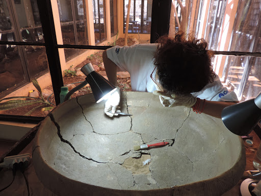 Trabajando en los laboratorios de restauración de materiales inorgánicos FUMDHAM.