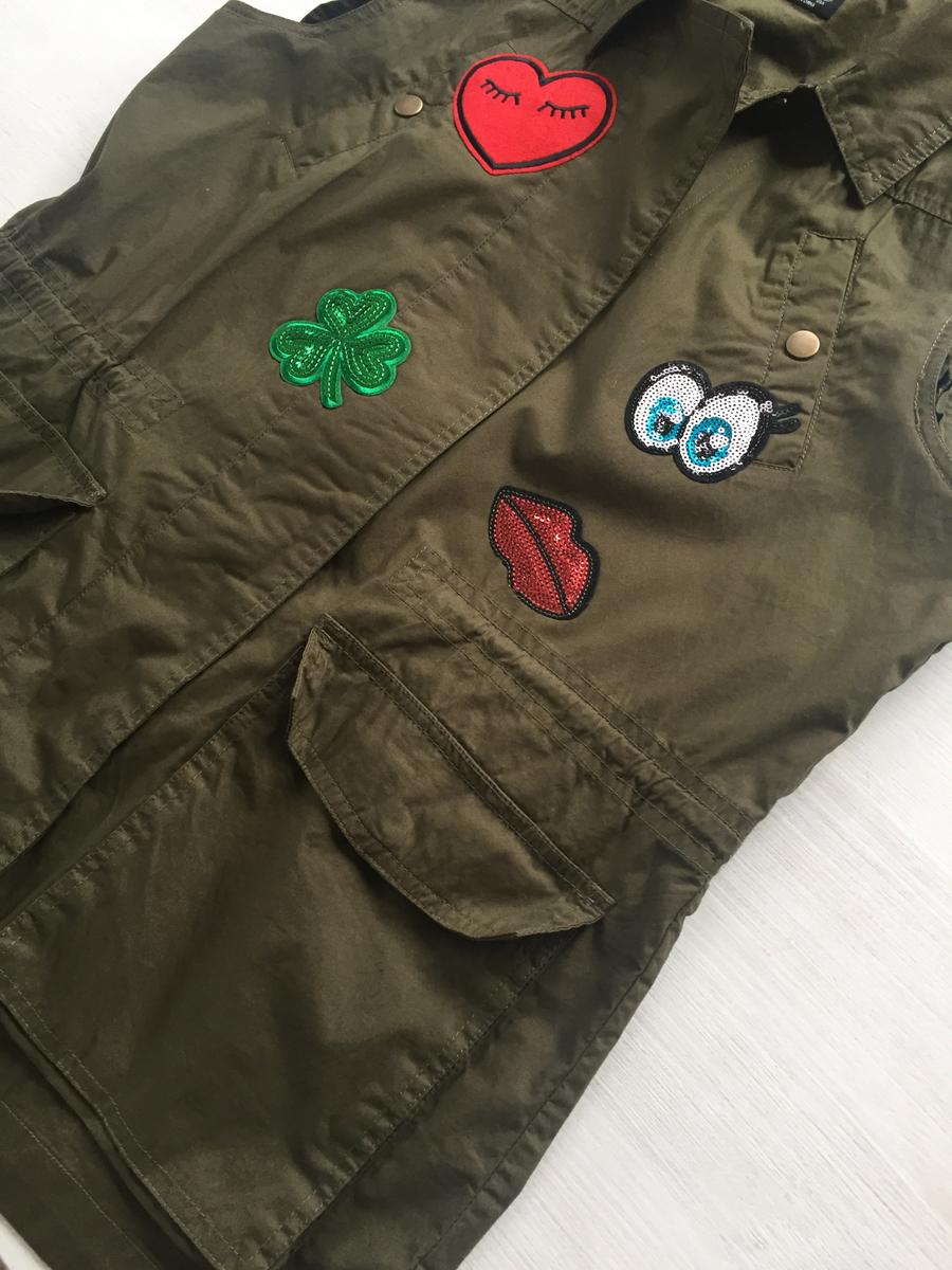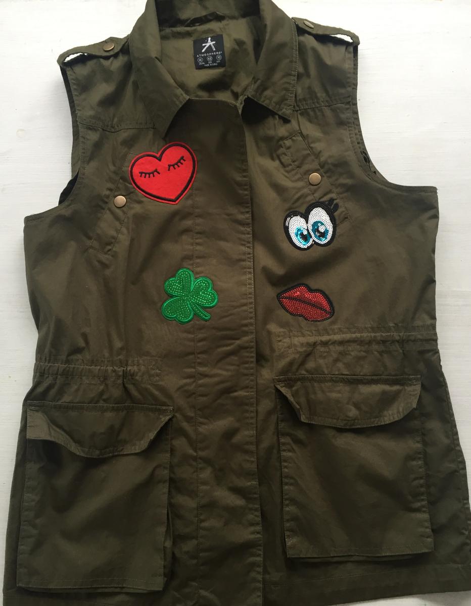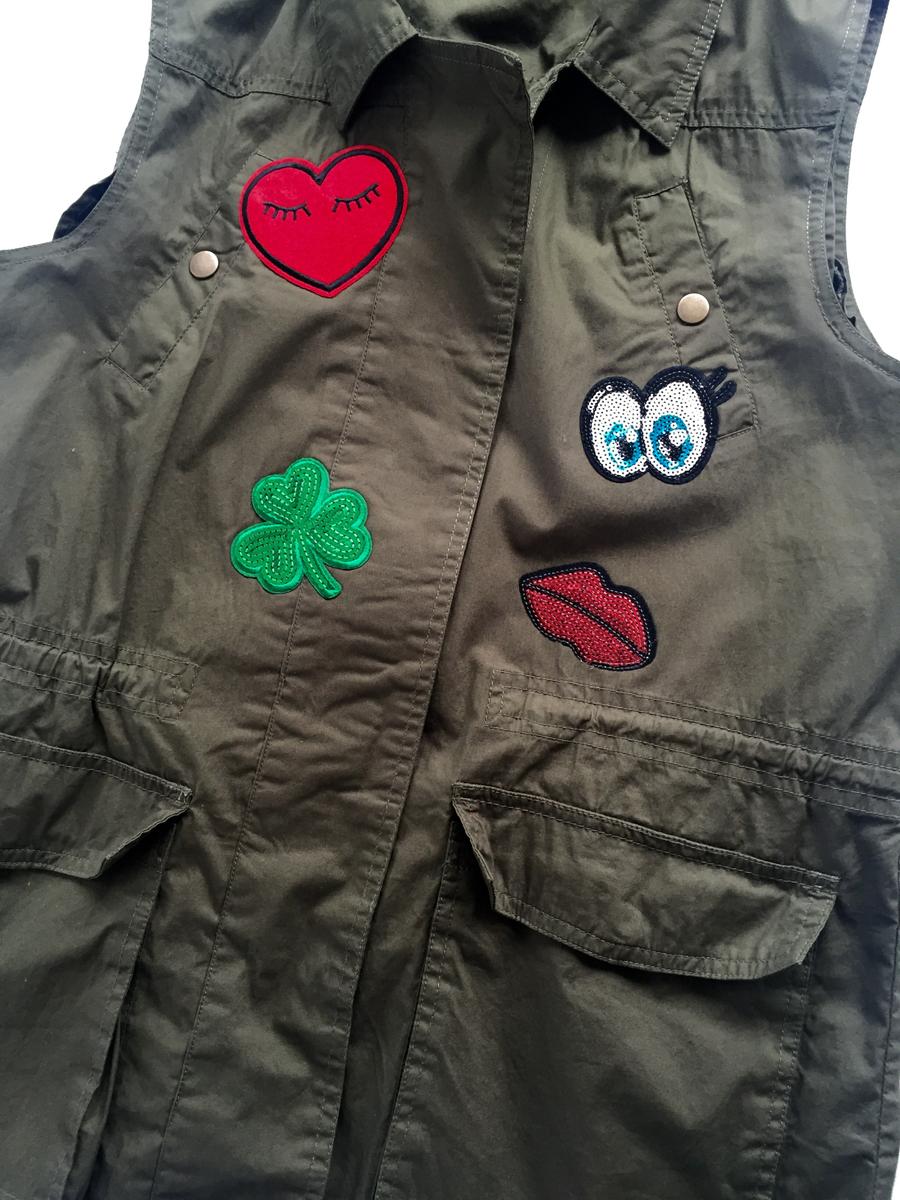 El antes y después de un chaleco de Primark. Con cuatro parches queda ideal, sólo tienes que plancharlos con un paño encima y listo! Un toque súper alegre para el veranito.